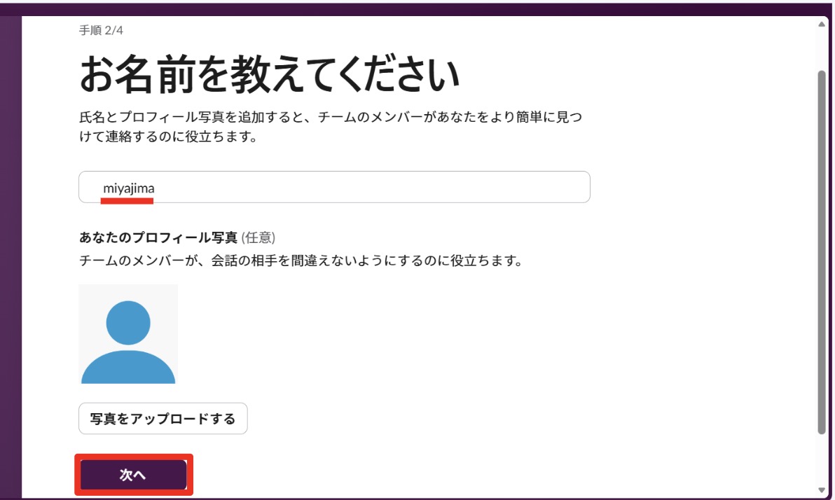 ワークスペースの名前を入力し、「次へ」をクリックしてください。