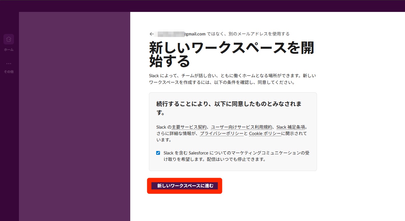 Windows環境で、Web版Slackを利用してワークスペースを新規作成していきます。